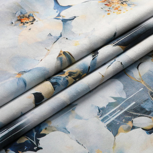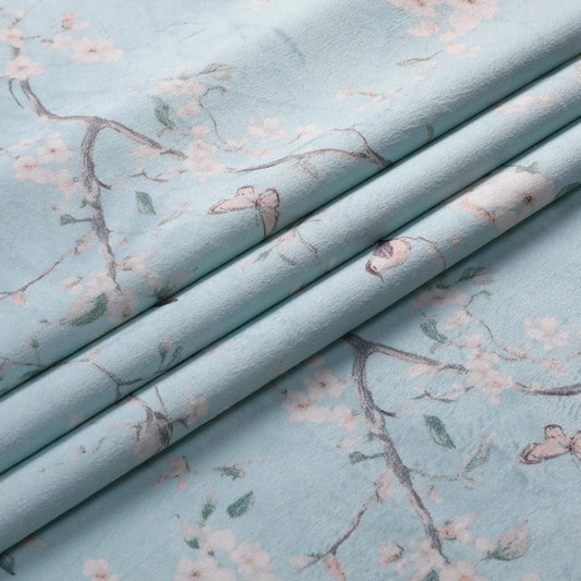 Soft Gray Flowers with Birds Velvet Tablecloth