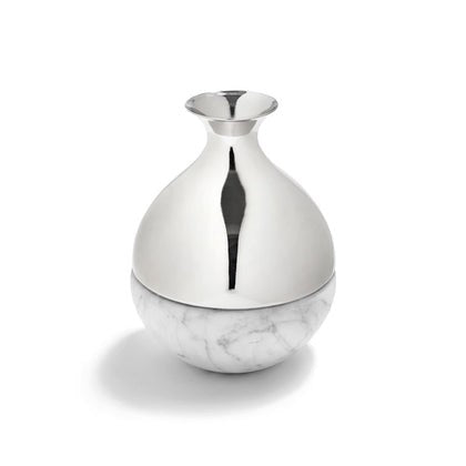 Crafted from luxurious Carrara marble and featuring a sleek silver finish, our bud vase combines elegance and sophistication. Perfect for showcasing your favorite flowers, this vase adds a touch of modern style to any home decor. Elevate your space with this stunning piece.