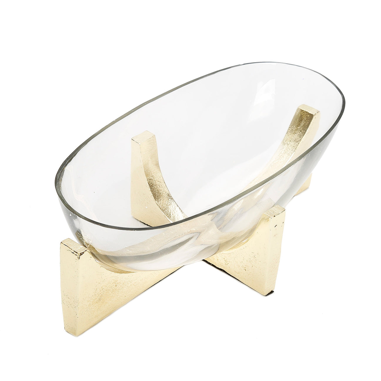 Oval Glass Gold Stand Bowl